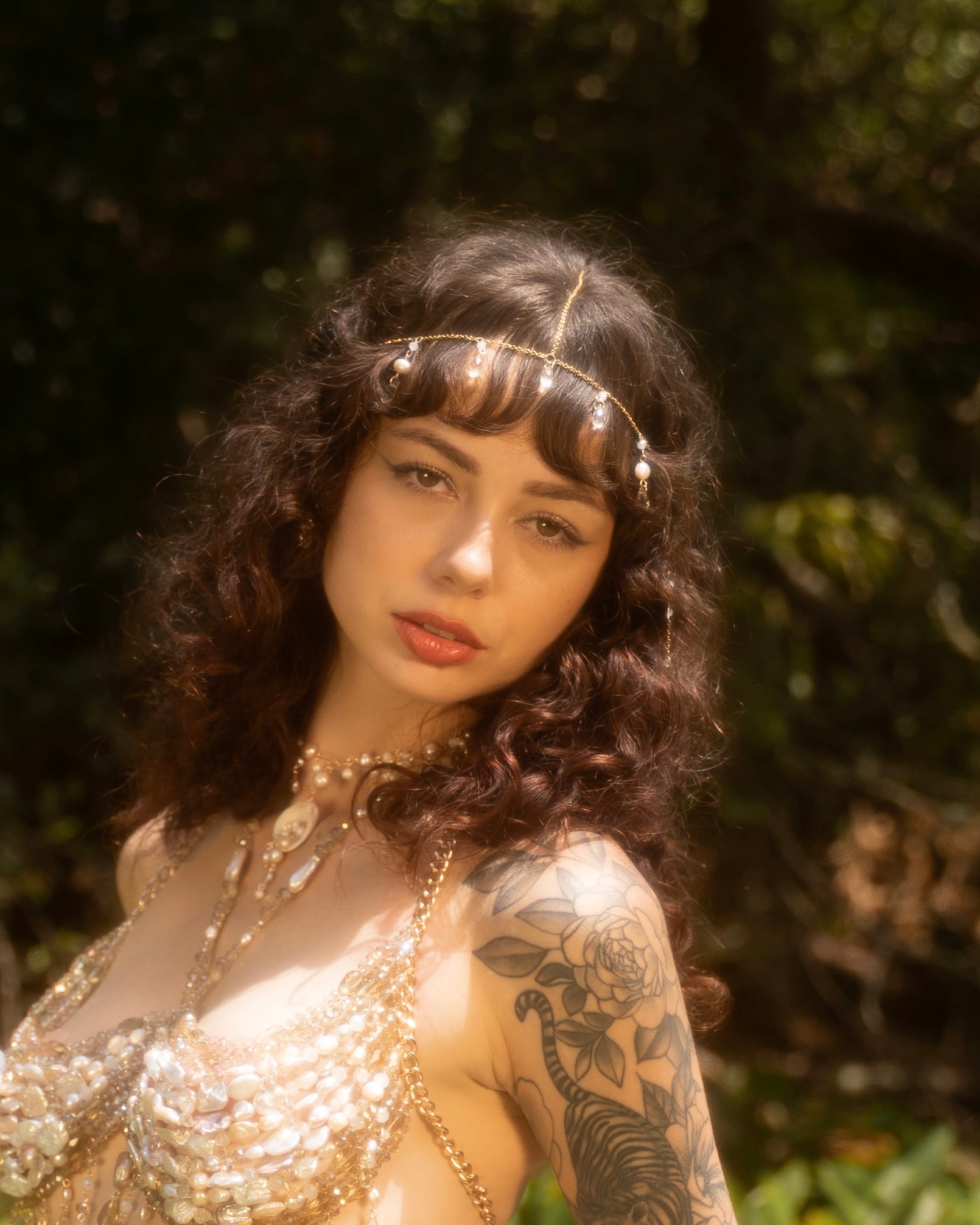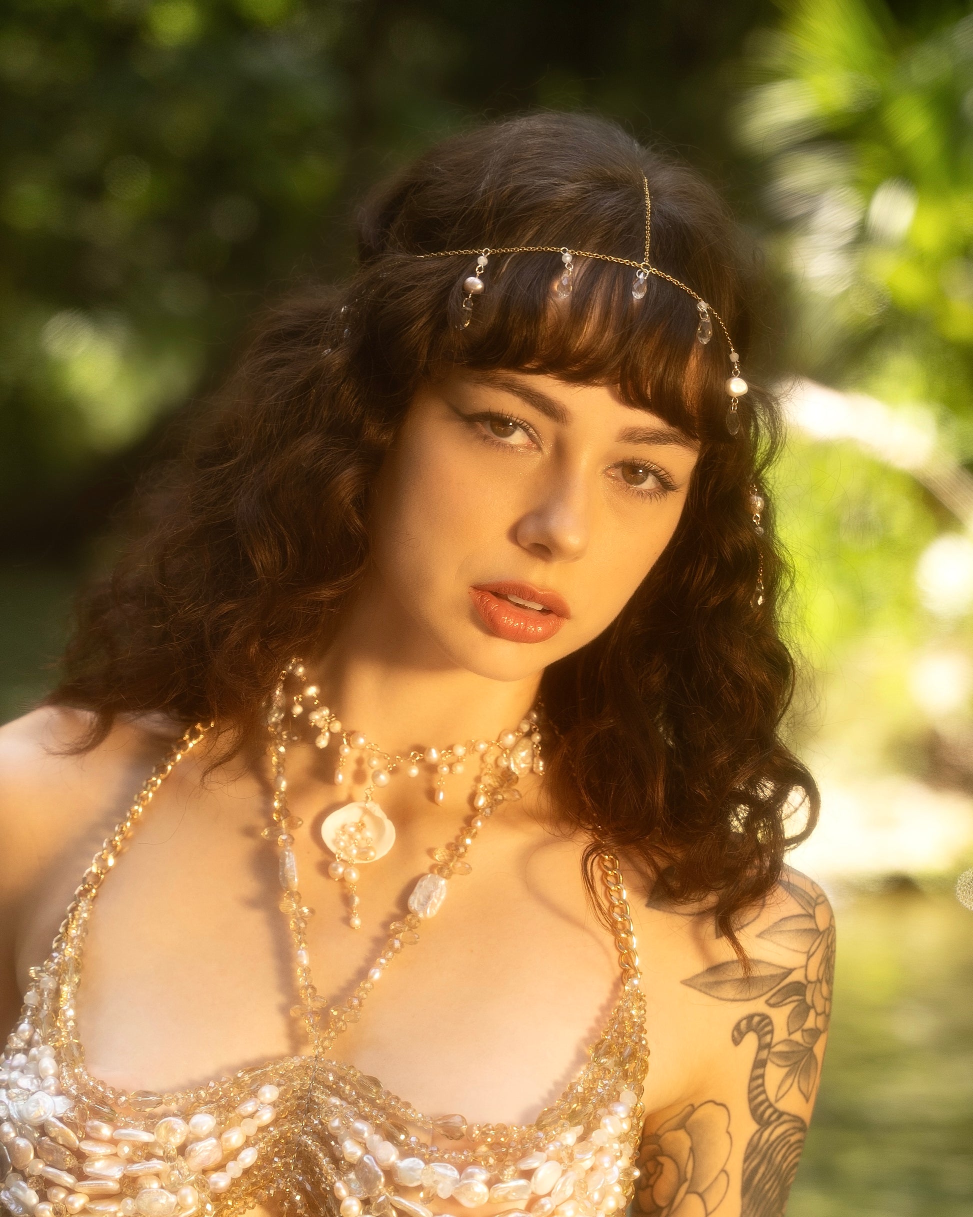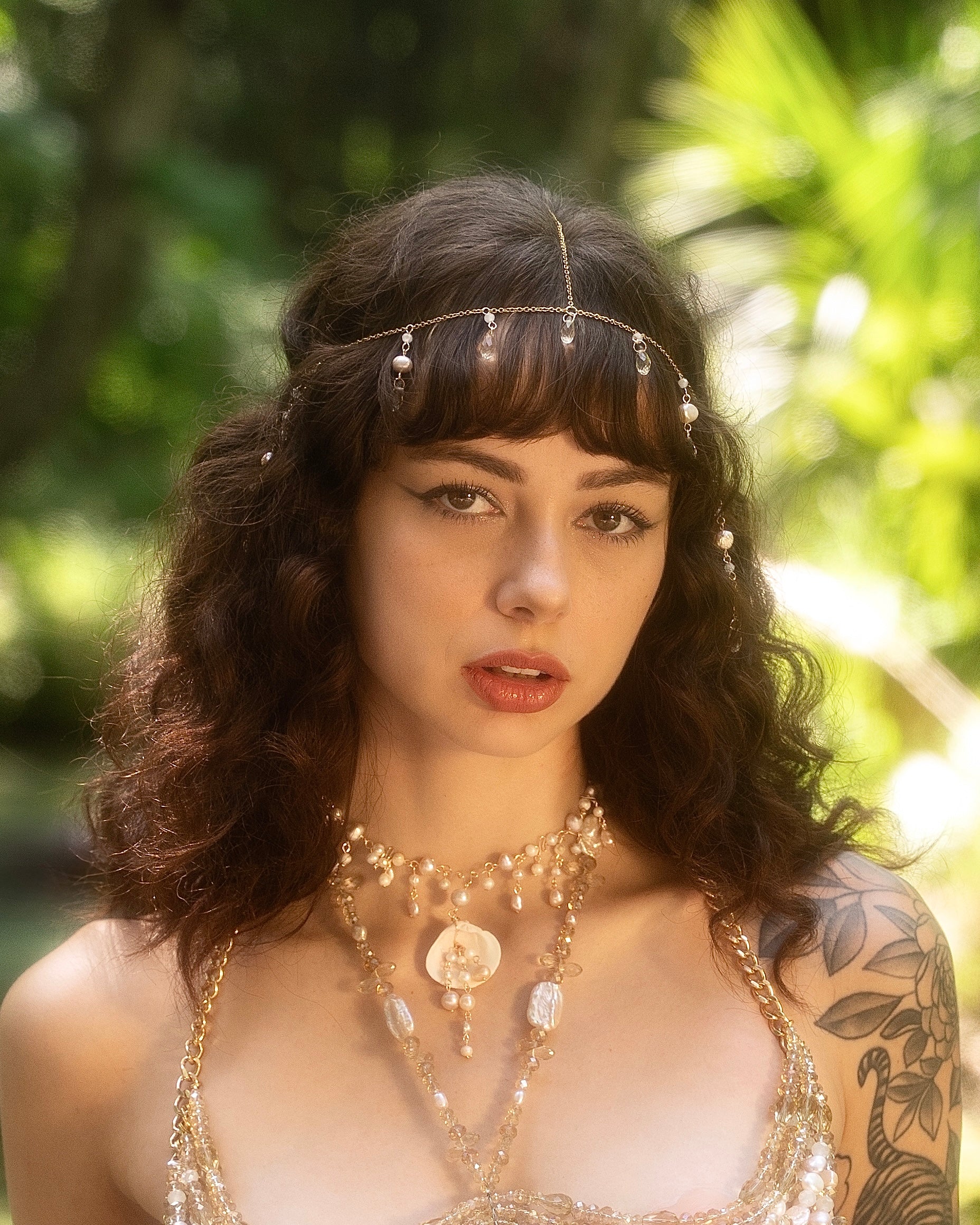 Dainty Crystal and pearl Head Chain is set with the intention of perseverance and attraction. It includes teardrop freshwater pearl, Czech beads and moonstone crystals. Wrapped with 14k Gold Vermeil.