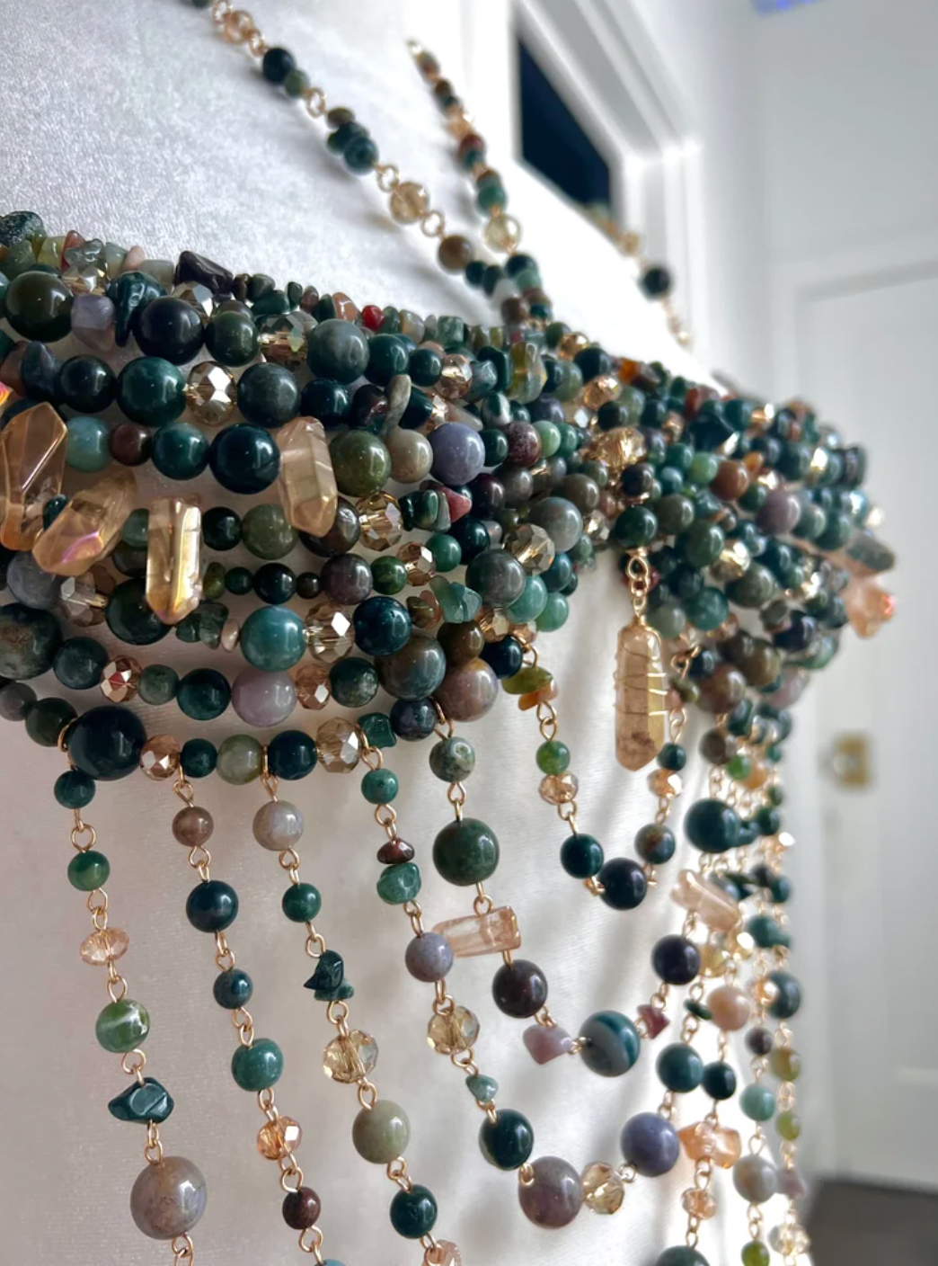 This one of a kind beaded bra is set with the intention of prosperity and unity. The top is adjustable, and will be made to size.