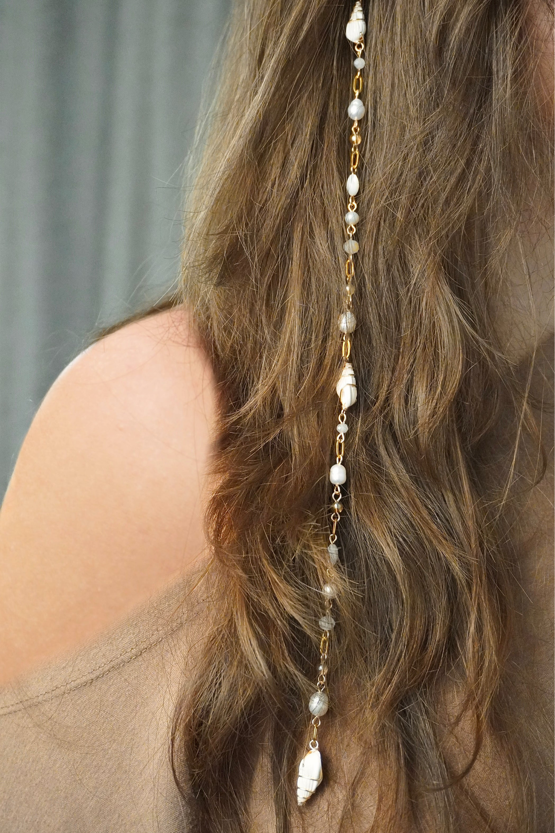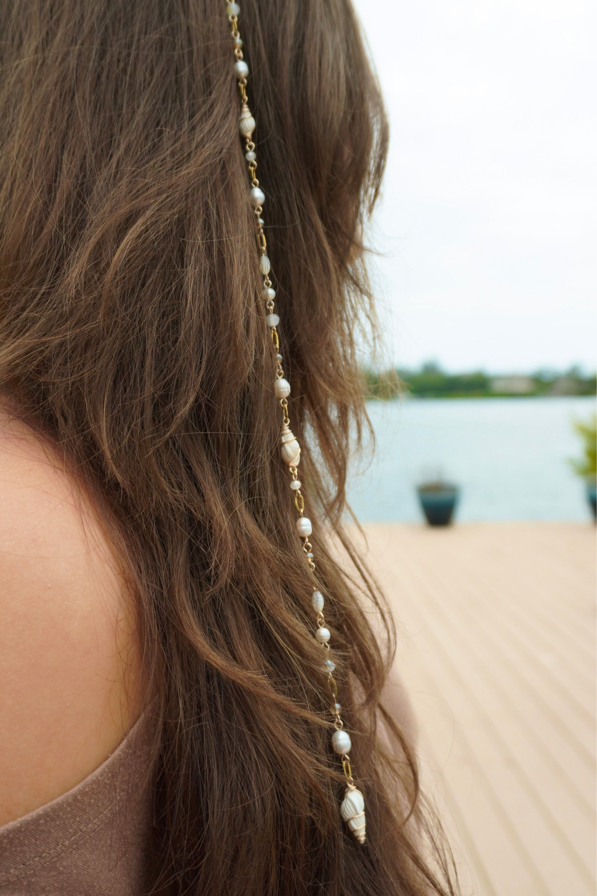 Seashell Hippie Hair Bead: Set with the intention of abundance and positivity. Includes a Sensitive Scalp Attachment Clip to attach the Hippie Hair Bead to your hair!