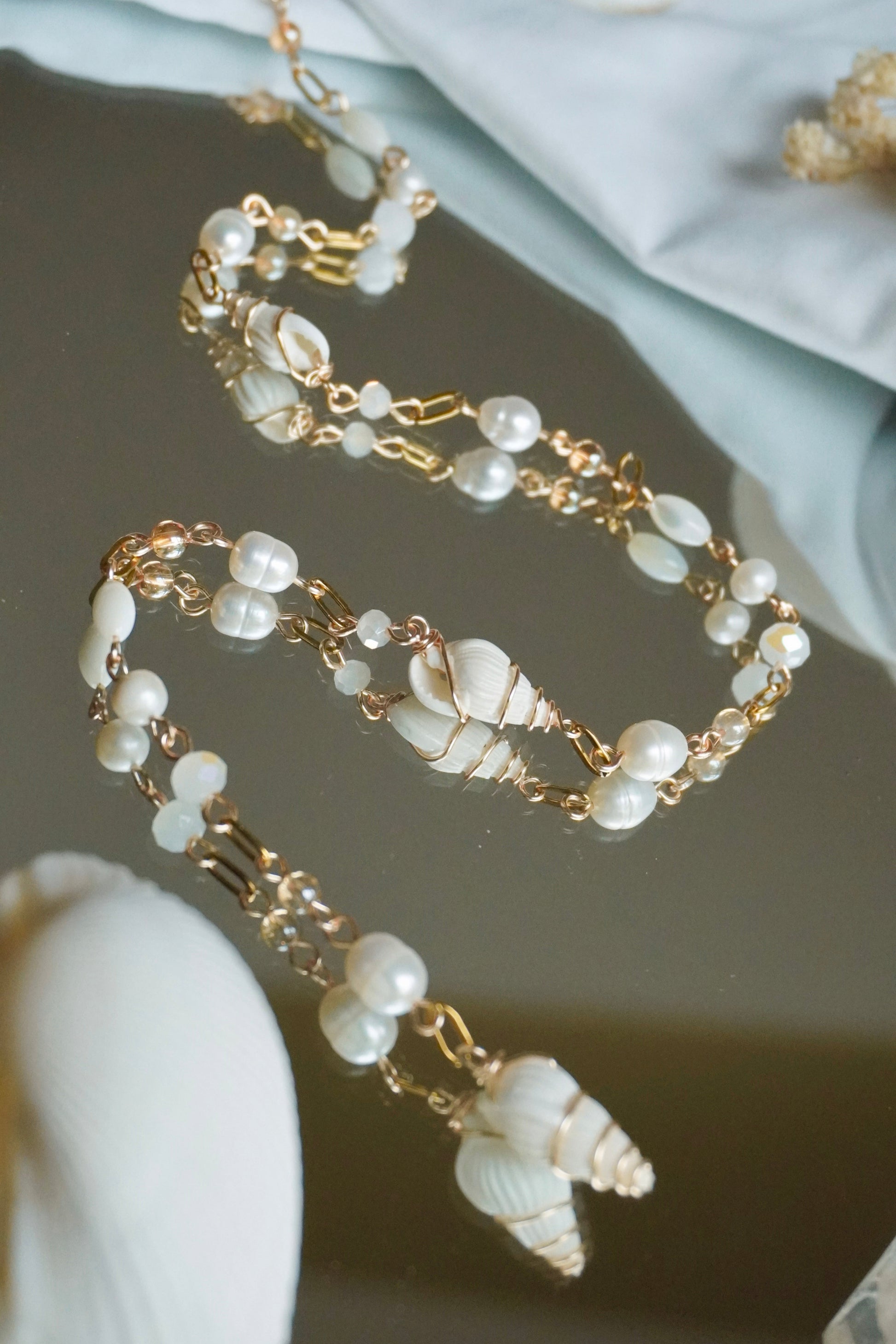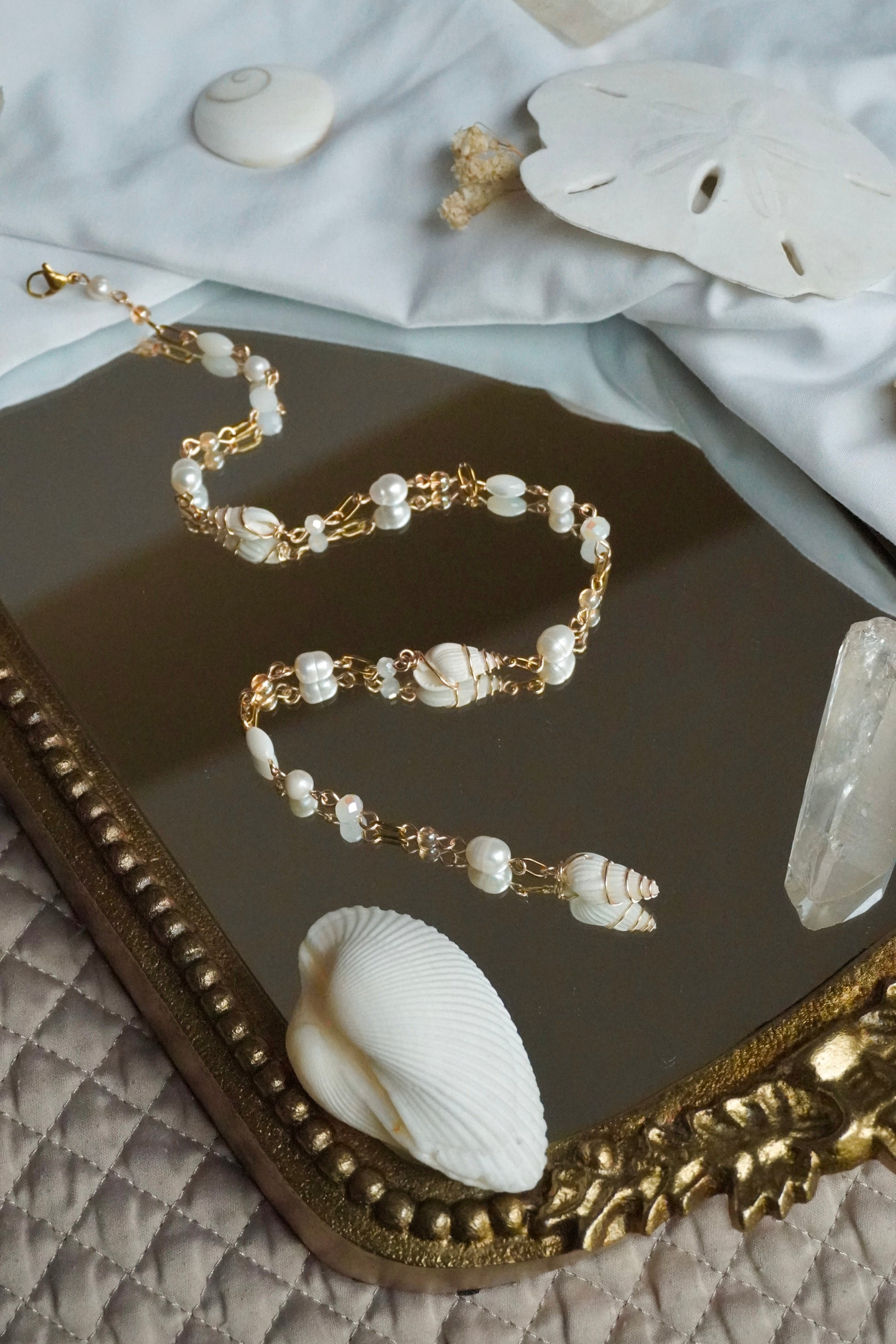 Crystals: Clear Quartz, Pearls, Czech White Beads, and Hand-Picked Gulf Sea Shells.