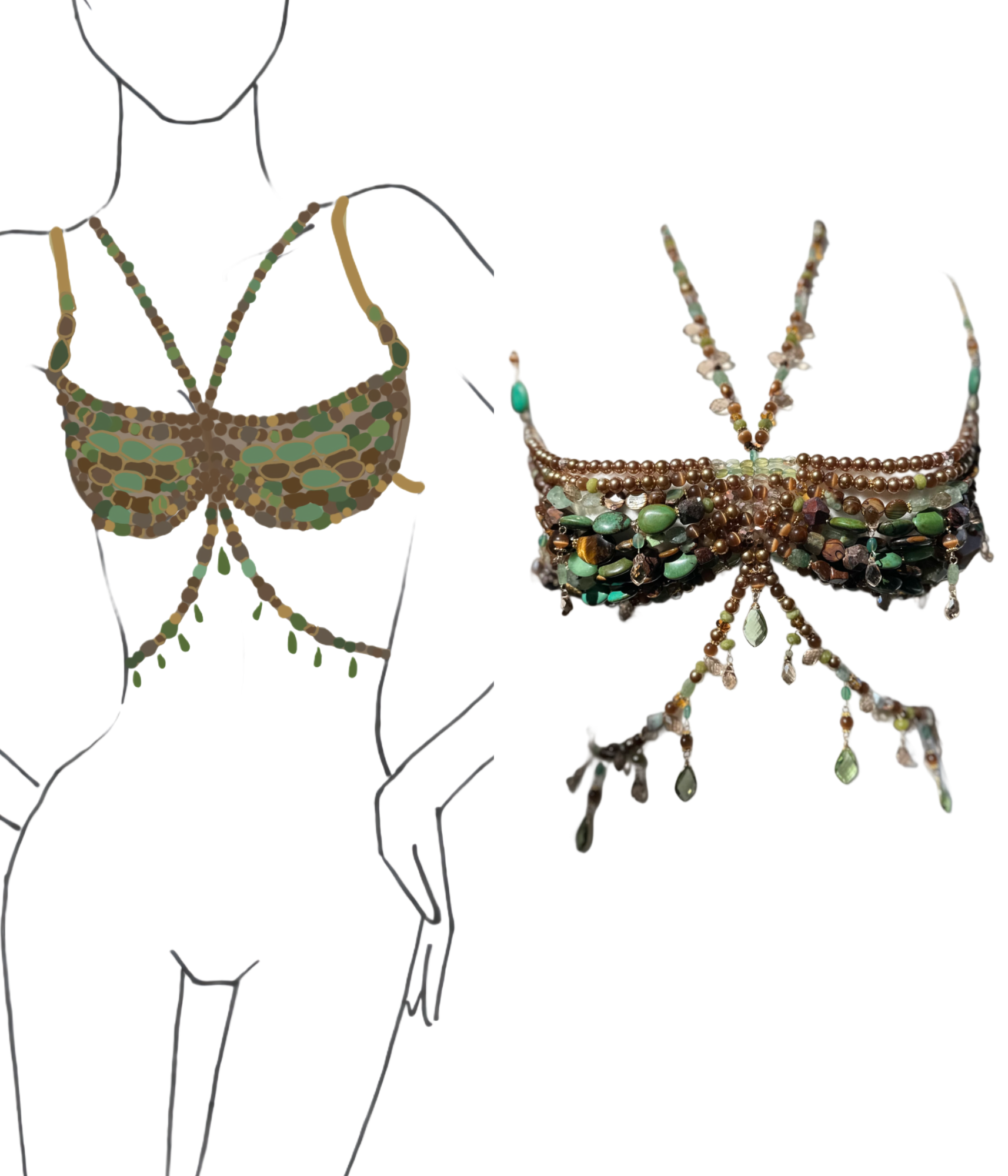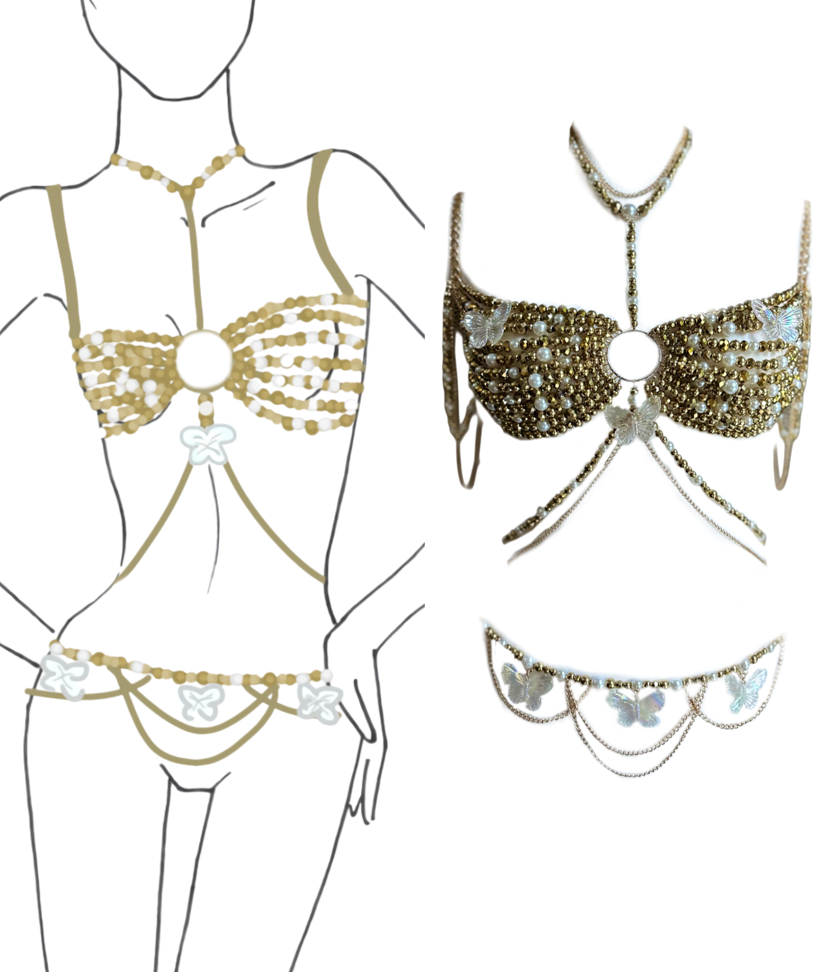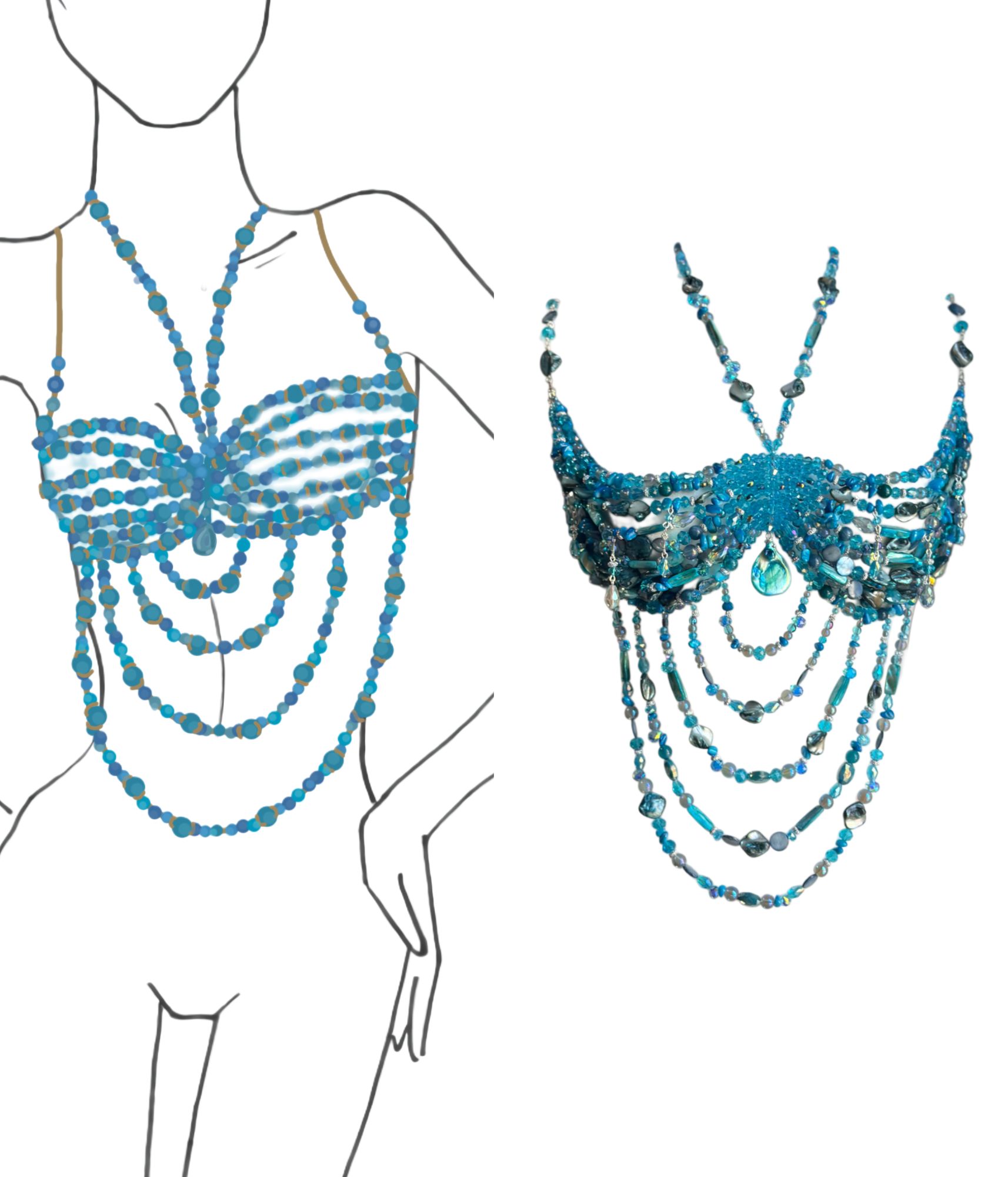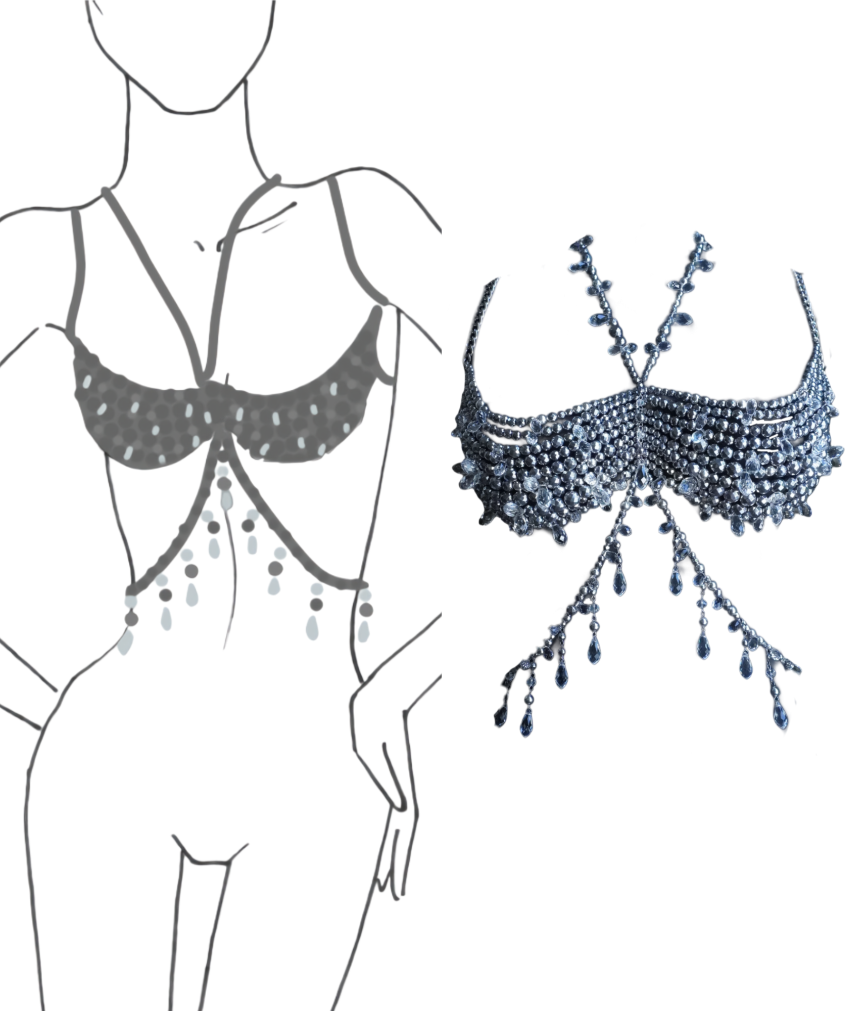 After we discuss what you would like, I will create a mock-up (as shown above) and determine the total cost. Custom pieces typically range from $350 to $600, depending on the style, bra size, and beads or crystals chosen. If you have any questions about the price of the bralette you have in mind, please feel free to reach out to me. The $150 down payment will be deducted from the total cost.